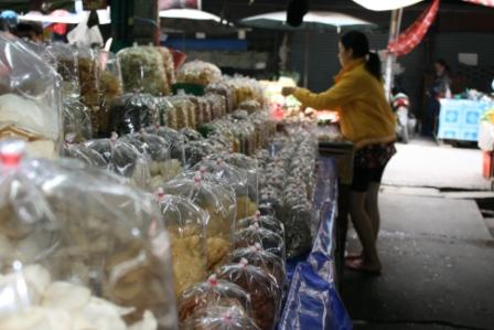 Nachdem ich meinen ersten organisations- und strukturierungs- Marathon hinter mich gebracht habe, kann ich nun endlich anfangen mich treiben zu lassen. Den Rest des Tages verbringe ich mit herumlaufen und aufsaugen von Eindrücken dieser anschaulichen Stadt. In der Ratchadamnoen Rd ist heute Abend Sonntagsmarkt. Es ist unglaublich wie viele Menschen sich durch die Straße schieben. Der Markt ist recht schön und viele Waren kommen aus dem Umland. Ich kaufe ein paar Kleinigkeiten und bin wie so oft von dem vielen Essen entzückt. Zum Abschluß ein leckeres Chang Beer und eine Fußmassage. Wer so viel läuft …