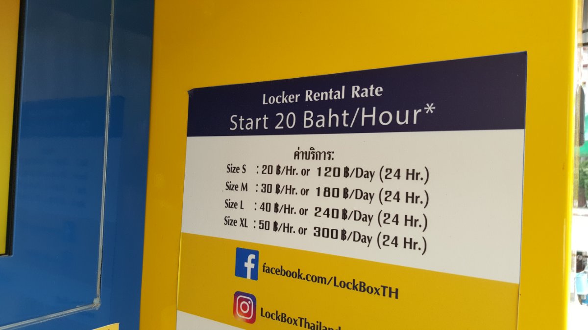In der Ueberführung zwischen der BTS Station Sala Daeng und der U-Bahnstation Silom wurden grosse, gelbfarbige Gepäckaufbewahrungsfächer in Betrieb genommen. Es gibt sie in verschiedenen Grössen und sind ab 20 Baht pro Stunde zu haben. Spezielle Tagestarife sind ebenfalls erhältlich. Den Zugang zu den Fächern erfolgt über einen 4-sprachigen Automaten, ebenfalls muss ein Passwort kreiert und die Mobile Phone Nummer hinterlassen werden.