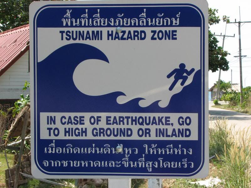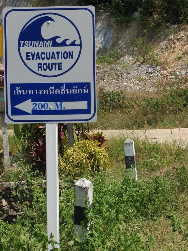 Auf den Inseln stehen jetzt in den Tsunami gefährdeten Gebieten Hinweisschilder: