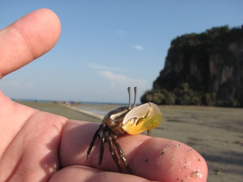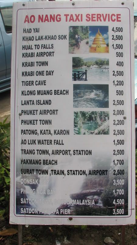 Von Krabi aus machte ich dann ein paar "Ausflüge". Erstmal nach Ao Nang, mit dem PickUp Bus für 40thb (wenn ich mich recht erinnere). Auf dem Weg war schon einiges an Gegend zu sehen. Da es ja Bilder genug im WWW gibt davon hier nur ein paar Infos (keine Ahnung wer das nutzt, wen man den Bus/Pickup-Preis kennt)