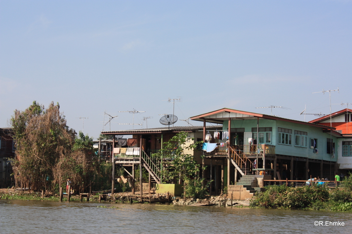 Wir wollen uns den etwa 20 Kilometer südlich von Ayutthaya gelegenen Sommerpalast Bang Pa In ansehen. Da wir nicht schon wieder Lust hatten im Auto zu sitzen entschieden wir uns für eine Bootstour. Das hier im Forum empfohlene Boot fanden wir aber nicht, so nahmen wir eben einfach ein anderes, teureres. Ich glaube wir haben 2500 Baht für den Tagesausflug bezahlt. War uns aber Wurscht. Für ein paar Baht hin oder her verzichten wir nicht darauf uns das Land anzu sehen.