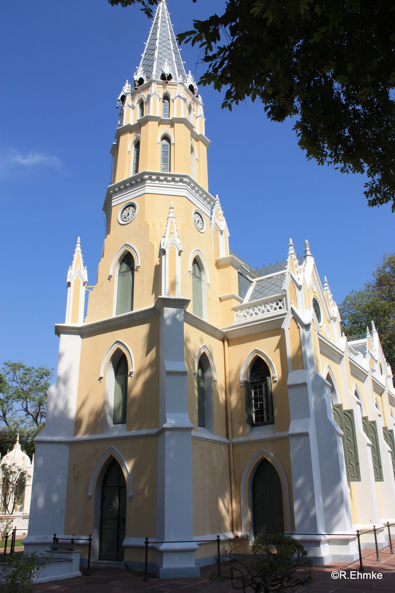 Wenn mich nicht alles täuscht dauerte die Strecke eine gute Stunde. Angekommen begaben wir uns erst mal mit der von Mönchen betriebenen einfachen Seilbahn auf eine kleine flussinsel auf der ein Wat in Form einer christlichen Kirche steht.