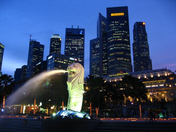 Zum Sonnenuntergang waren wir dann am Fullerton Hotel von wo man einen wunderschönen Ausblick auf die Skyline hat.