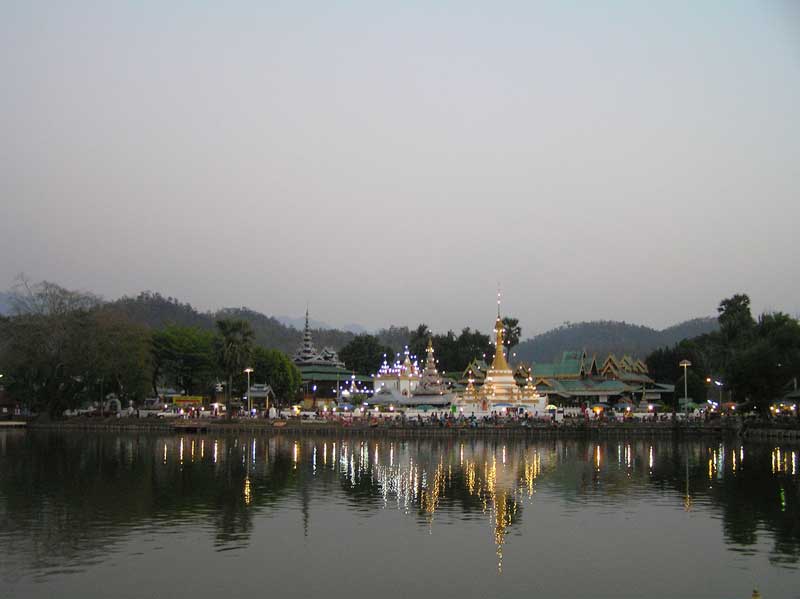 Weiter ging’s nach Mae Hong Song durch die tolle Landschaft die leider zu dieser Jahreszeit doch sehr vertrocknet war. Hier haben wir im Palm House für 450 Baht in der Nähe vom See gewohnt, was auf jeden Fall sauber und o.k. ist, die Leute sind sehr nett aber schön ist anders. Einziger Wehmutstropfen, direkt neben dem Resort ist ein Grundstück auf dem Hühner gehalten werden und morgens um 3.52 Uhr ging’s dann mit dem Hahnengeschrei los, es war als würde der Hahn mitten auf unserem Bett stehen und in unsere Ohren Krähen. Hier haben wir dann noch die Fish Cave besucht. Na ja nicht so der Hit!!! Die Wasserfälle haben wir uns nicht angeschaut da wir von vielen anderen rumreisenden gehört haben das es sich nicht lohnen soll, weil kein Wasser da wäre. Na ja schade aber man kann ja nicht alles haben.