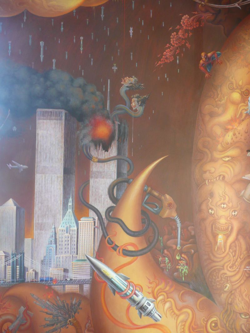 Mit irren Zeichnungen, verwoben mit der Neuzeit. Darth Vader, Spiderman,