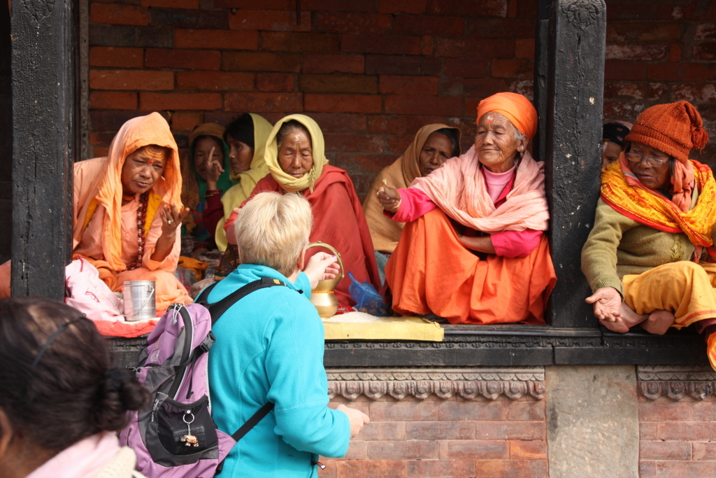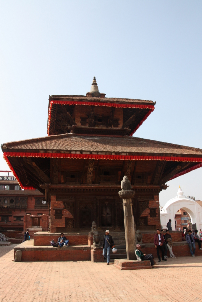 Hier besichtigten wir den sogenannten Durbar square, ein Platz, eine Straße, ein Bezirk, sagen wir eine Tempelstadt. Hinduistische und buddhistische Tempel und Tempelschulen. Hier im weitestgehend Auto freien Bereich konnten wir einen schönen ausgedehnten Spaziergang machen. Angenehme 20 Grad, Sonne, zwischendurch nepalesischen Tee. Wir machen so etwas gerne. Den Reiseführer in der Hand, etwas über die Hintergründe und Geschichten der Tempel lesen. Ich werde hier in dem Bericht aber keine Reiseführerberichte zetieren. Wer Interesse hat kann ganz einfach googeln.