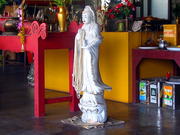 die Heilige muesste Quan Yin sein, sie ist auch in manchen Buddhistischen Tempeln zu finden. In Thailand auch 'Guan Imm' genannt.