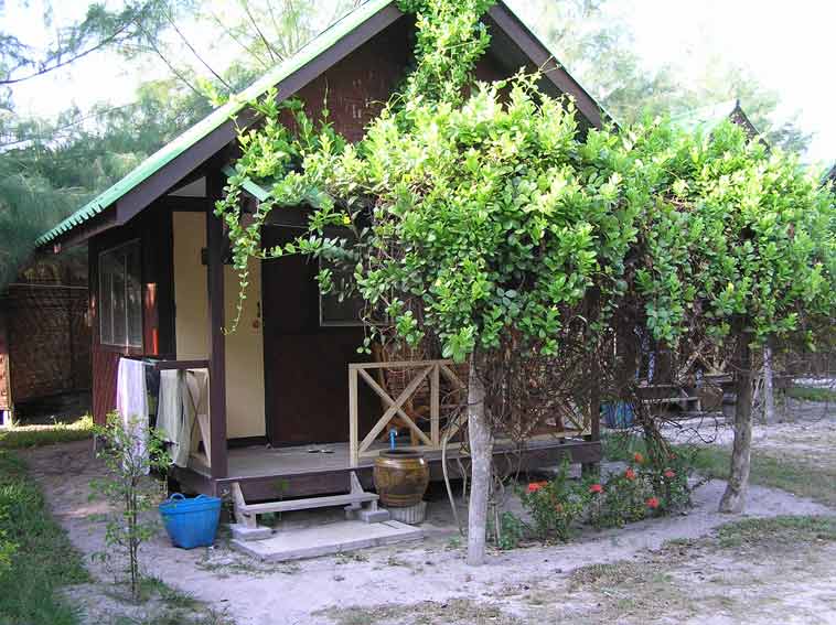 Der Andaman Beach ist ruhiger und dort gibt’s nicht ganz so viele Boote wie am Pattaya Beach. Wir haben uns weil die komplette Insel sozusagen ausgebucht war, erst mal in einem neuen Nobelressort am Pattaya Beach eingenistet, überhaupt nicht empfehlenswert. Die Bungis kosten 1.900 Baht mit AC, wir haben um Geld zu sparen ein Zimmer mit Fan genommen für immer noch 1.100 Baht, wir wurden dann in Deutschland würde man sie als Asylanten Heime bezeichnen, komische im Müll und der Walachei gelegene Langhäuser verfrachtet. Hier war’s schrecklich, die Wände waren super dünn, man hat seine Nachbarn bei jedem Pups gehört. 10 Zimmerchen alle in einer Reihe gebaut, überhaupt keine Privatsphäre, der Horror. Aber das Restaurant ist nett und das Essen in Ordnung.